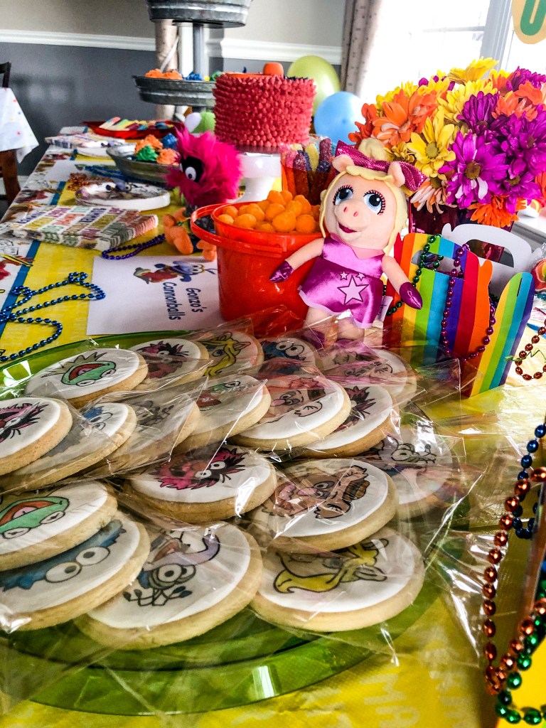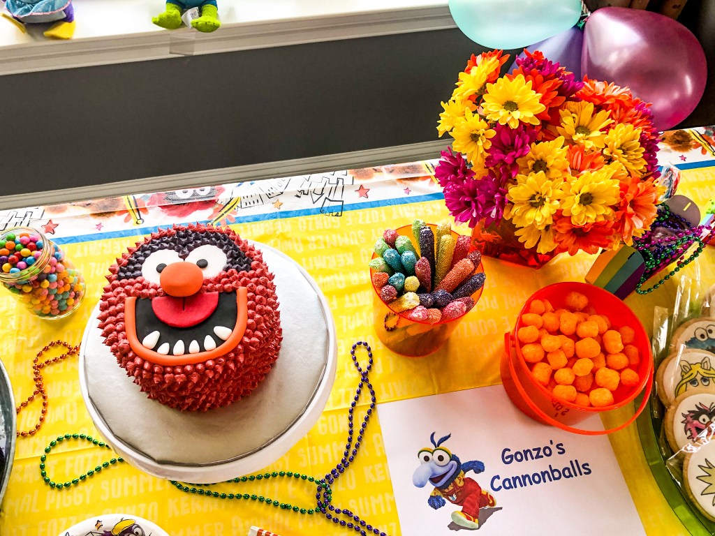 Gonzo – He is always doing stunts and shooting himself and other’s out of a cannon. So, on the snack table we had “Gonzo’s Cannon Balls” for the kids to snack on.