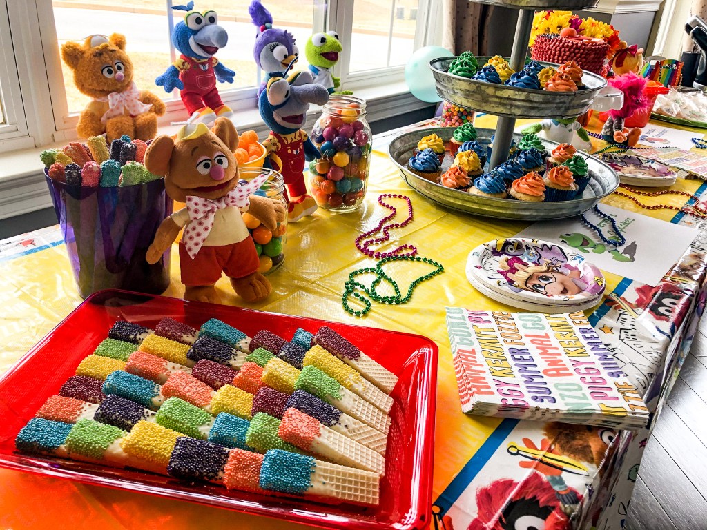 Miss Piggy – We had “Miss Piggys in a Blanket” for the kids to eat. Also, if you are having a Muppets party for a little girl, a fun idea would be to incorporate her love of bows and get bows for all the girls.