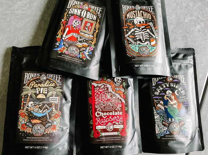 When Covid hit last year I really had to start making my own coffee. I love trying new flavors, especially as the seasons change. Last summer I discovered Bones Coffee Company. I LOVE their coffees! There are so many different flavors to pick from that are available year round. They also issue new flavors around the holidays.