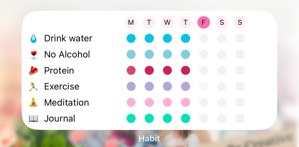 I also use a habit tracker on my phone. I use and I love it! I can color code my habits and set a widget on my Home Screen so I actually keep up with it.